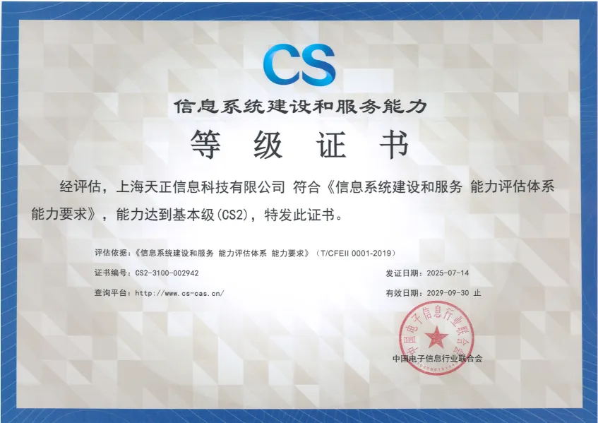 喜報(bào)!熱烈慶祝天正信息成功通過ITSS三級認(rèn)證,邁向服務(wù)新高度!